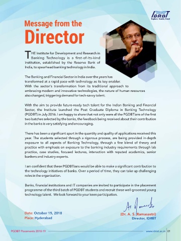 PGDBT Placements 2018-19 www.idrbt.ac.in 01
