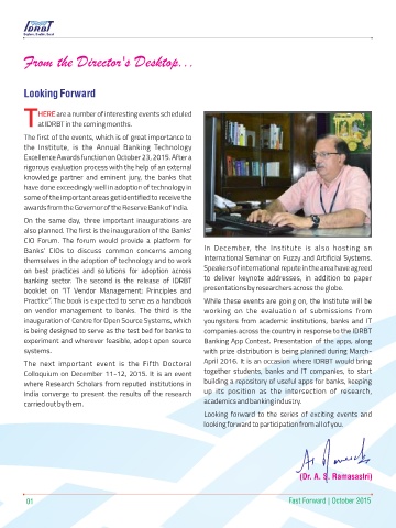 banking sector. The second is the release of IDRBT to deliver keynote addresses, in addition to paper