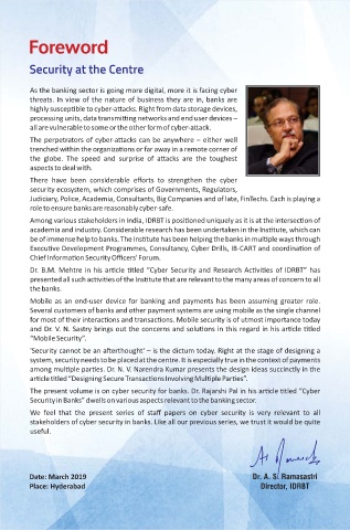 The present volume is on cyber security for banks. Dr. Rajarshi Pal in his ar cle tled “Cyber