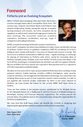 FinTechs, we have chosen the theme for the current IDRBT Staff Paper Series as