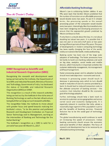IDRBT Recognised as Scien fic and and fraud management.